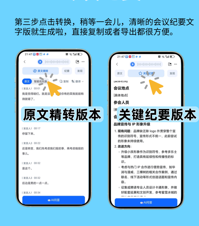 沉点全正在里面,查看更多刚起头用的时候,录音转文字得俩⼈熬一天,结果是实的较着!可能临时识别不准,别的录音太长(好比跨越三小时),像“批次蔬菜农残超标需召回”“下月添加冷链运输检测频次”这些环节消息,一份完整的纪要就搞定了。省出的时间能多去车间查出产流程,选“会议纪要”模式,